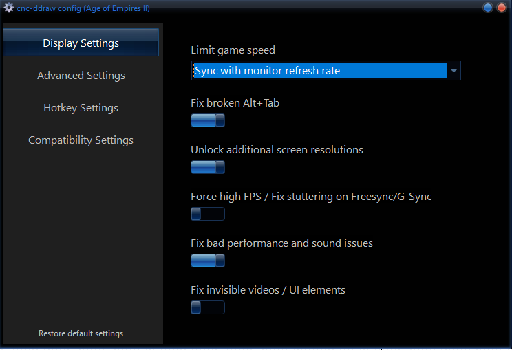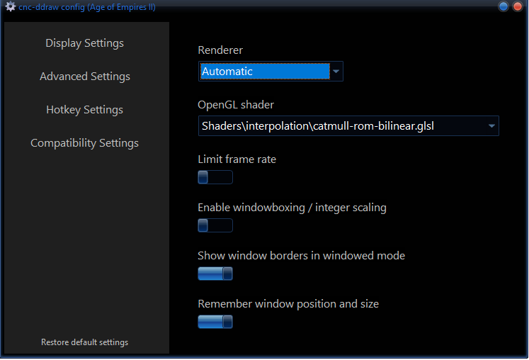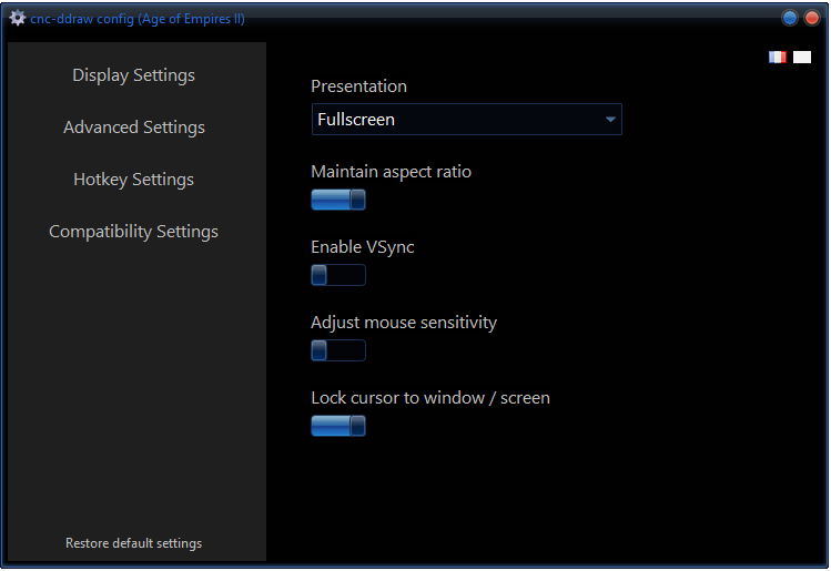 If you want configure again cnc after installation just run Age of Empires II\cnc-ddraw config.exe for Aok and Age of Empires II\Age2_x1\cnc-ddraw config.exe for Aoc/Aofe .
